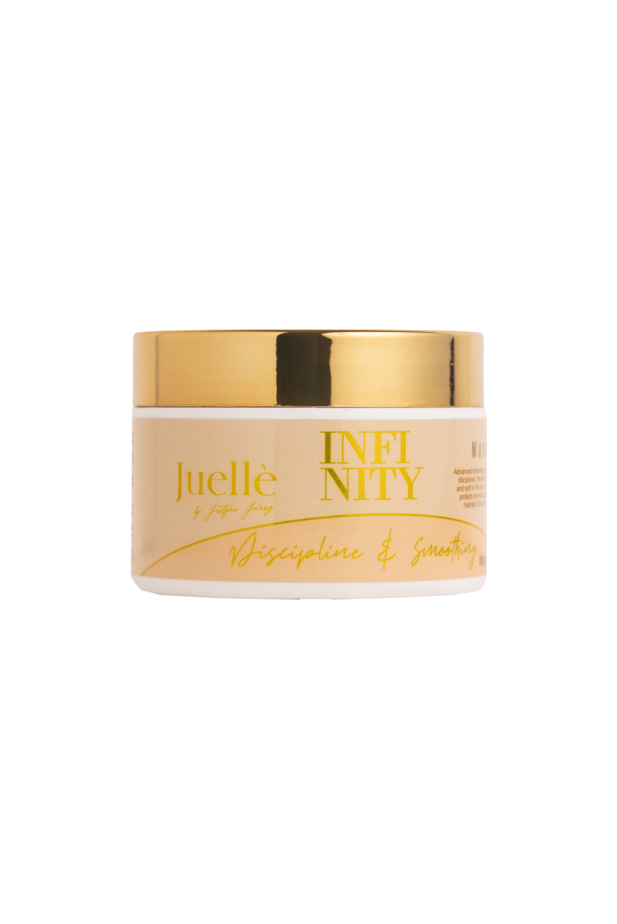 Maska Infinity Discipline & Smoothing od JUELLE została opracowana z myślą o włosach puszących, które wymagają szczególnej uwagi w walce z puszeniem. Główne składniki, takie jak masło z nasion Murumuru, dostarczają głębokiego odżywienia, pomagając regenerować uszkodzone włókna włosów i przywrócić im zdrowy wygląd.